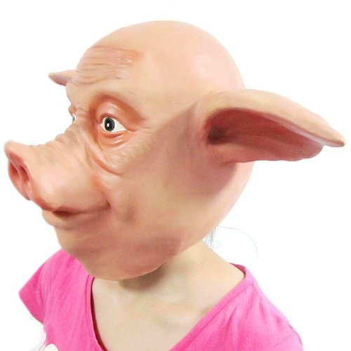 Realistic costume head mask great for parties, gag, Harlem Shake etc Fits most adult heads Material: latex (non-toxic) Design: Pig With holes at the pig nose Color: Beige Note: Air the mask for a couple of hours before first time use to reduce the latex smellPackage includes: 1x head maskPrice: $24.40