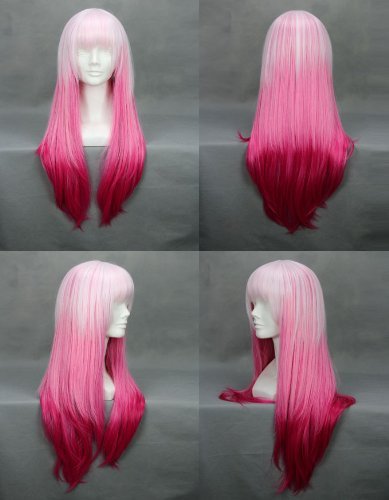 - Attractive Womens Long Mixed White/pink Synthetic Hair Cosplay Wig
