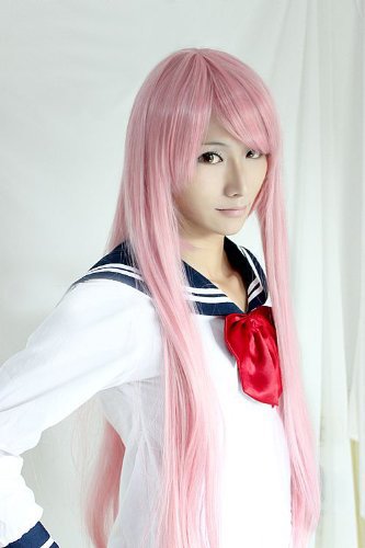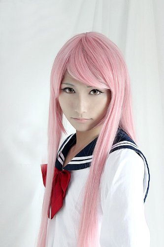 - Fashion Womens Long Stright Pink Cosplay Synthetic Hair Wig