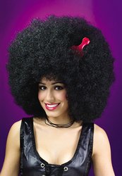 - This adult costume accessory includes a super sized retro afro wig in black.