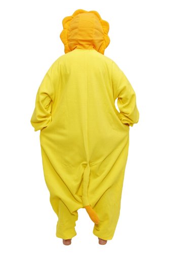 Looking for a costume that shows off both your roaring vicious side and your purring cuddly side? Well that search is now over! This sunshine yellow Lion Kigurumi will display the leader of the pride in you. You'll be ready to stalk and hunt your unsuspecting prey all while looking the best you've ever looked! Holding your mane high in adventure all day will tucker you out, so with a big roar and a yawn you retire for the evening. Lounging at home you couldn't ask for pajamas more comfy!